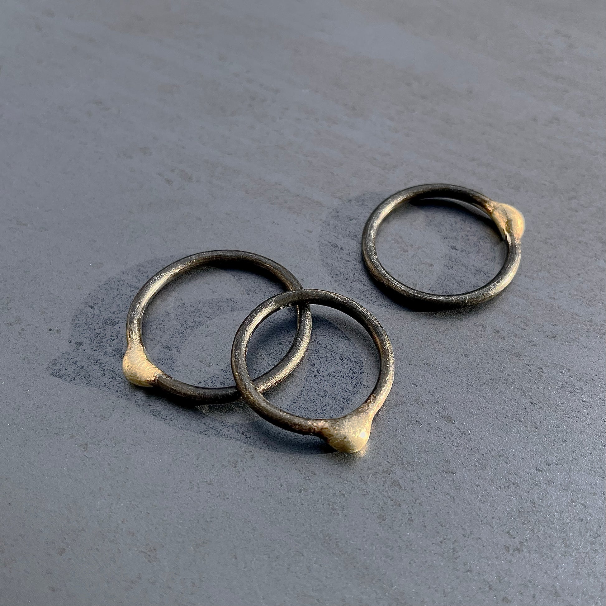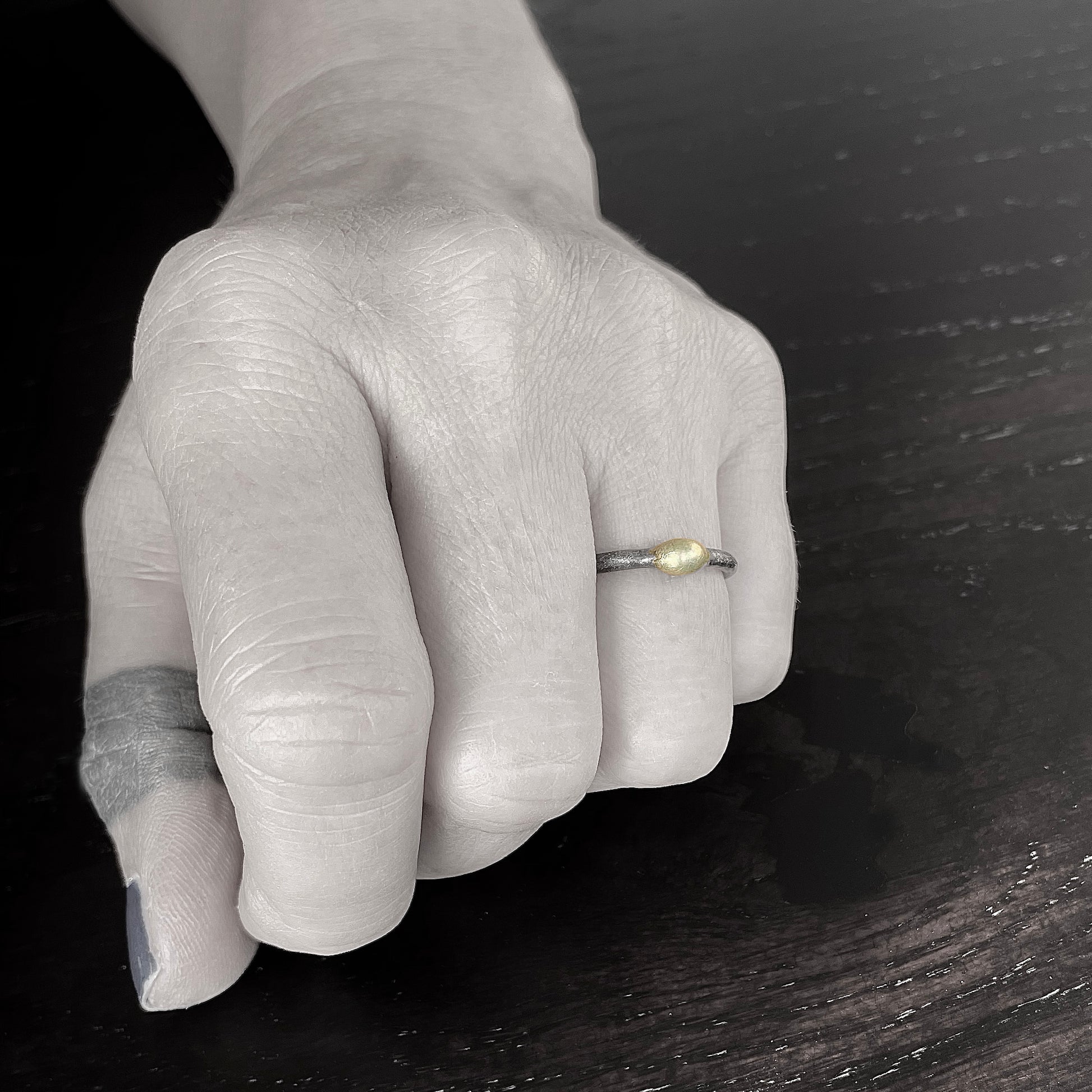 PEARL ring - Black with Gold is made from a solid sterling silver round wire, blackened.