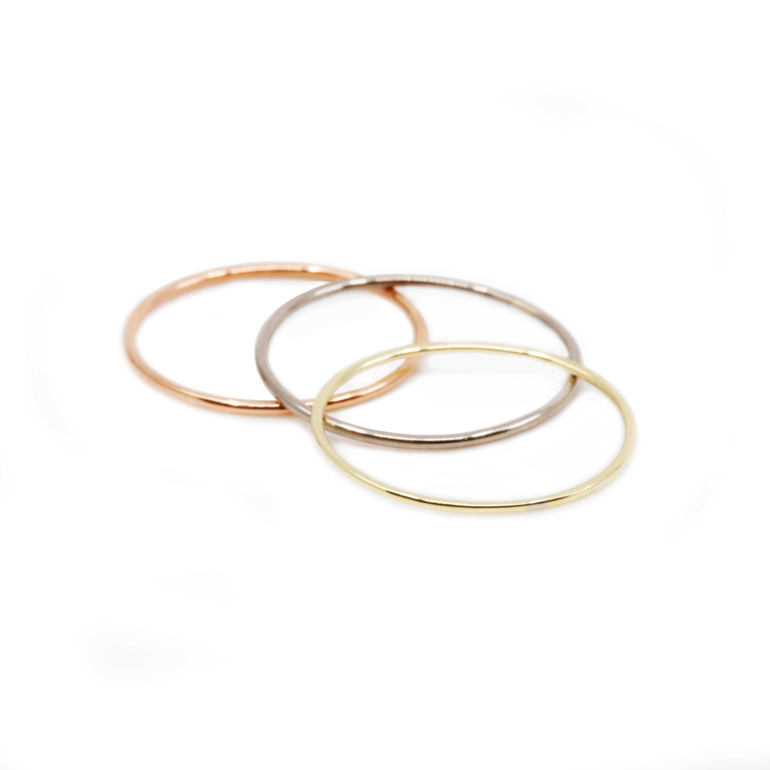 RING thin ist ein zarter, aber stabiler Ring aus 14-karätigem Golddraht mit einem Materialstärke von 1 mm.