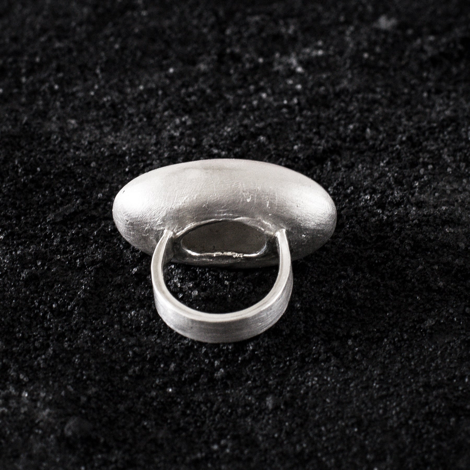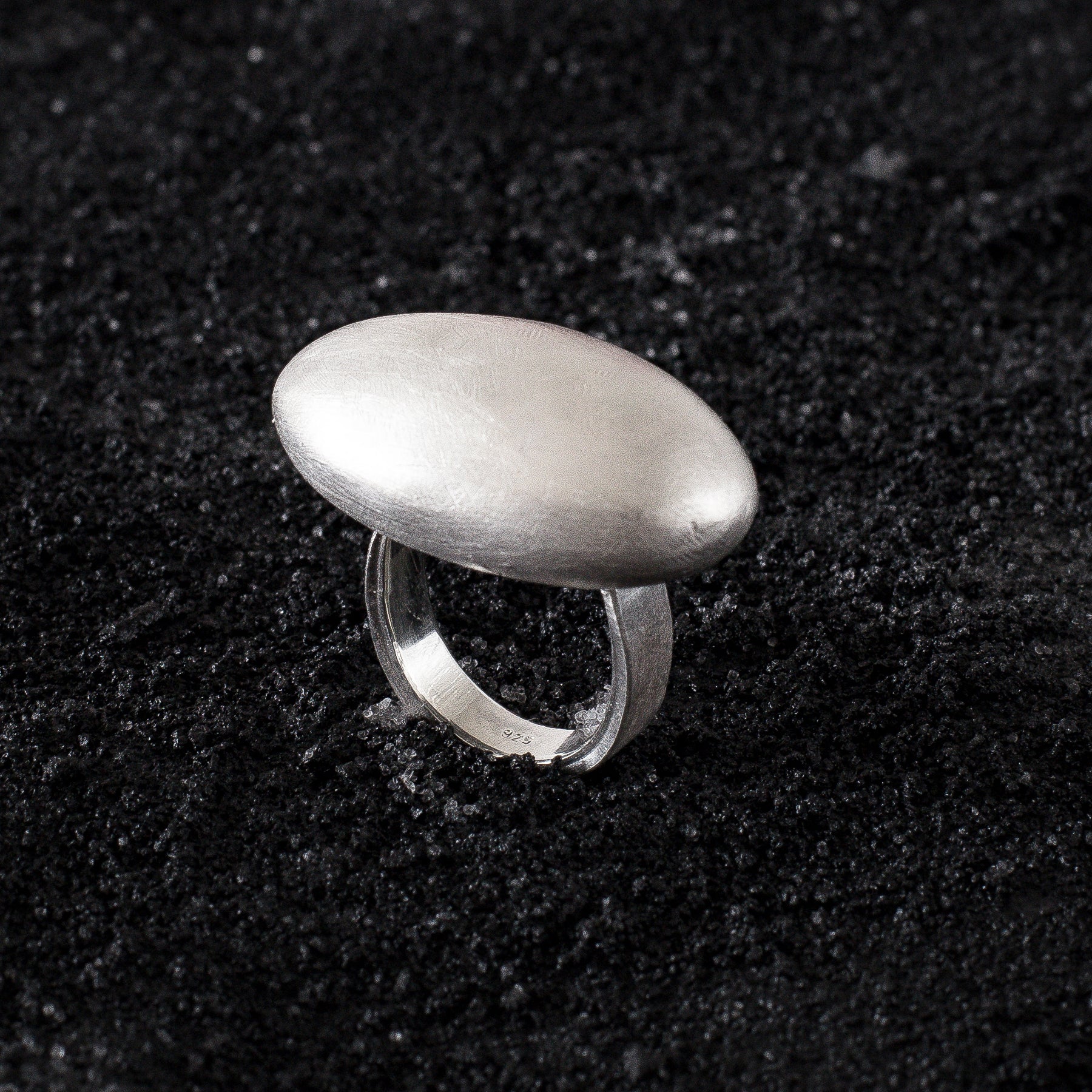 The ring is worked hollow to make it lighter. The ring rail's inside is highly polished for the extra smooth and comfortable fit. The outside is matt.