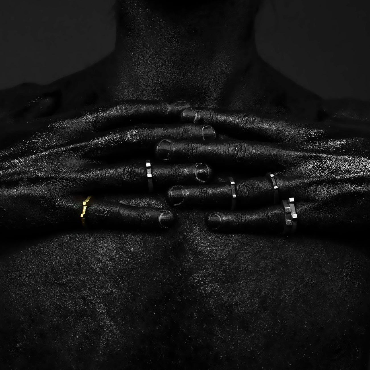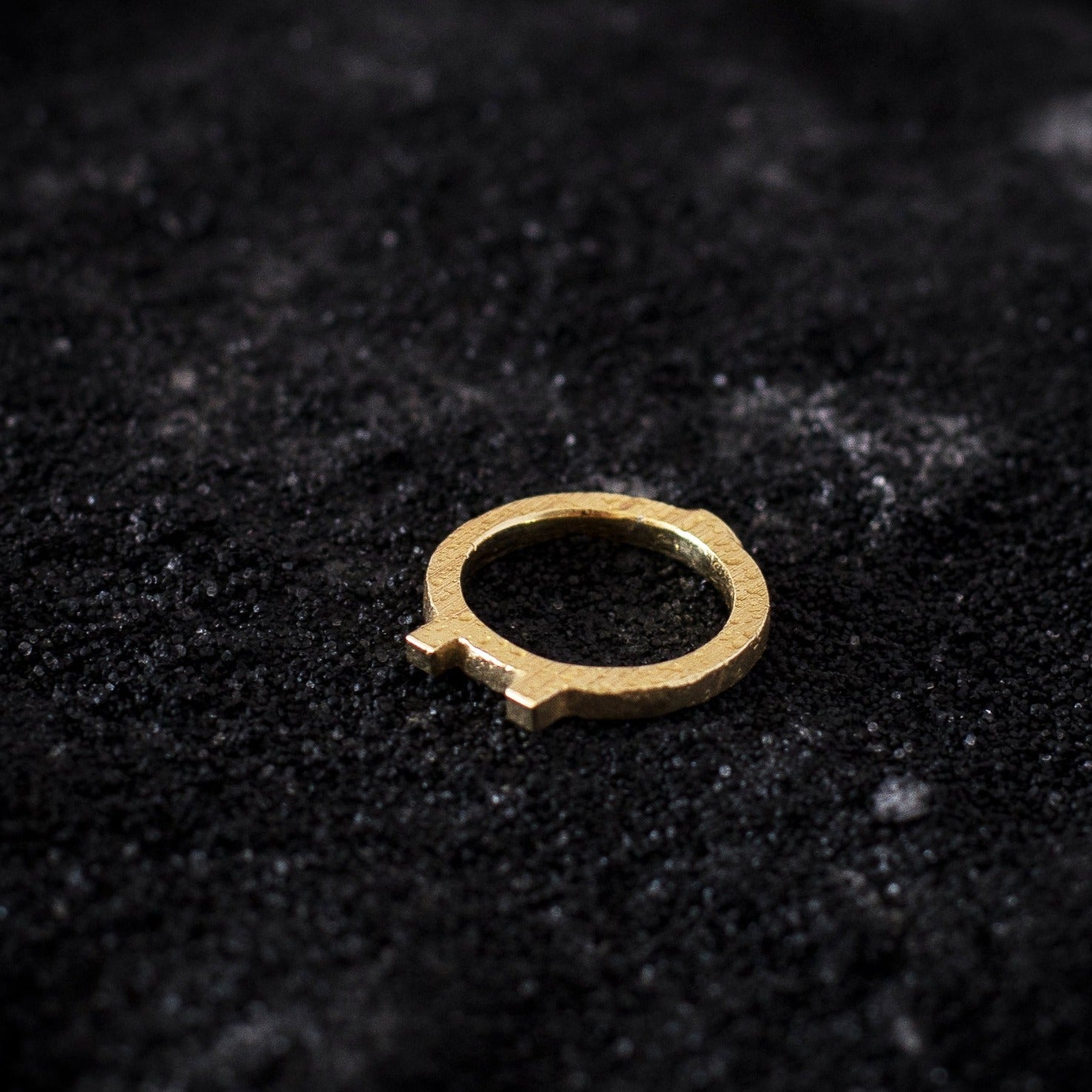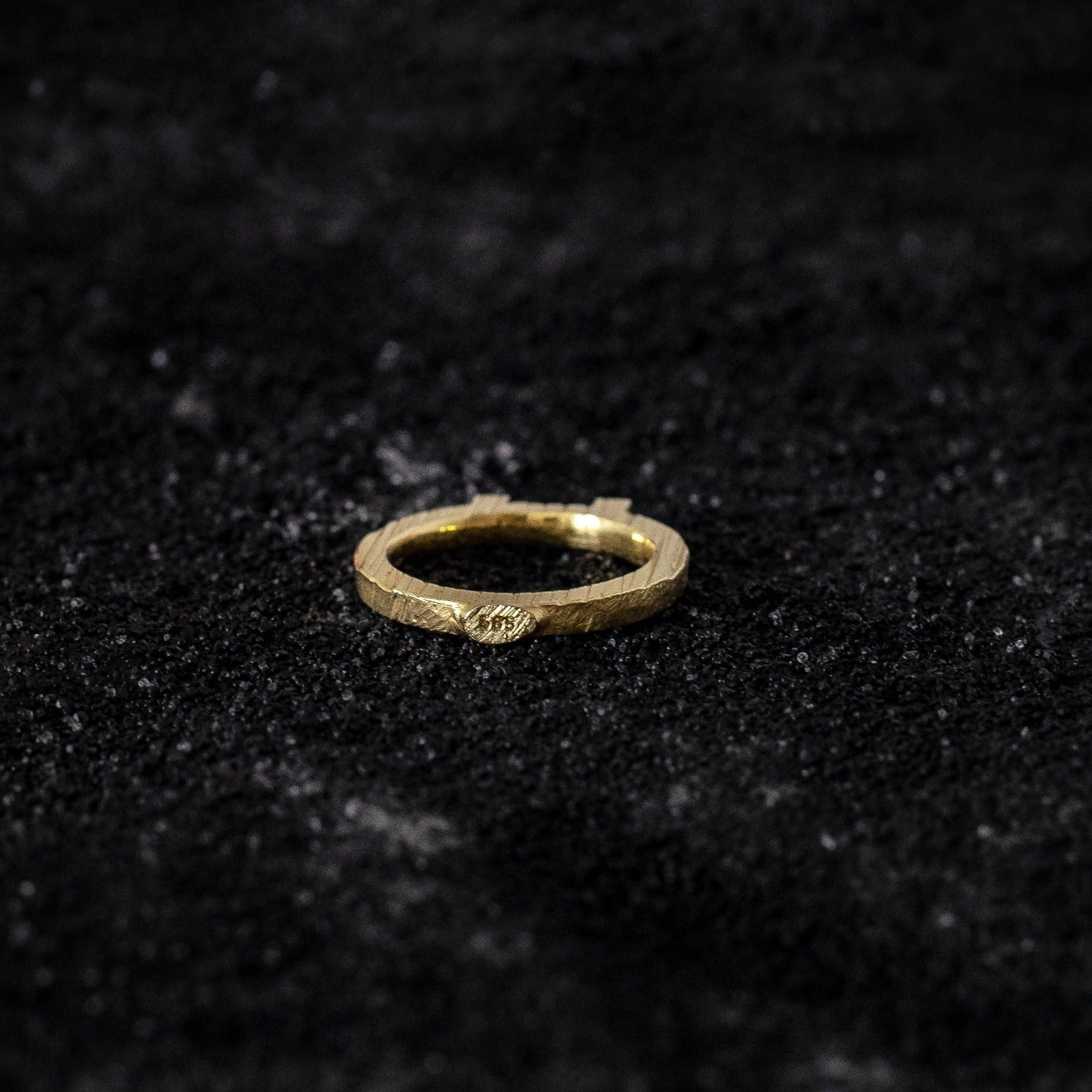 The ring's surface is worked roughtly, while the ring rail's inside is highly polished for the extra smooth fit, as well as the two squared tops.