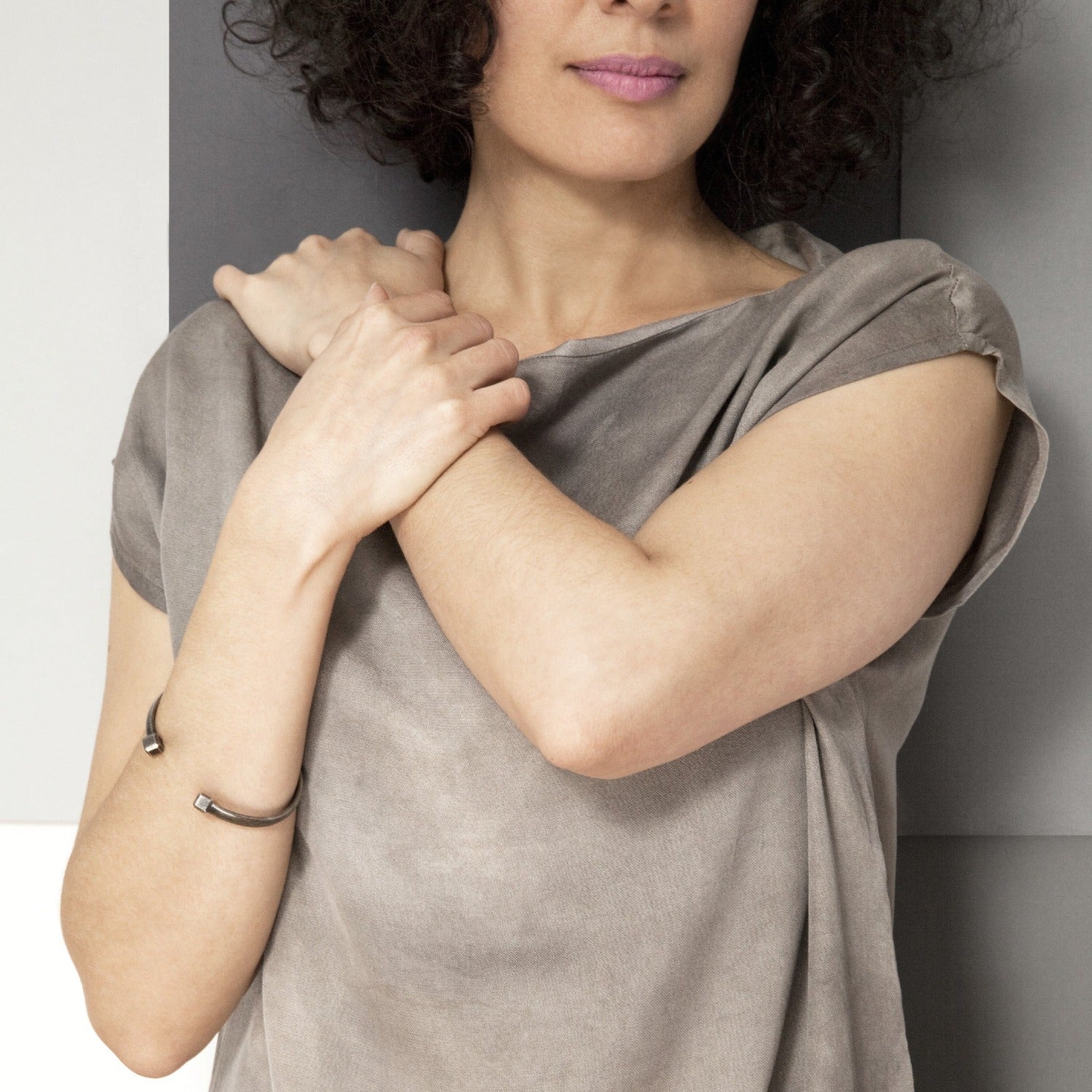 Elegant and plain, this cuff reminds in a very subtle way of art-deco jewelry.