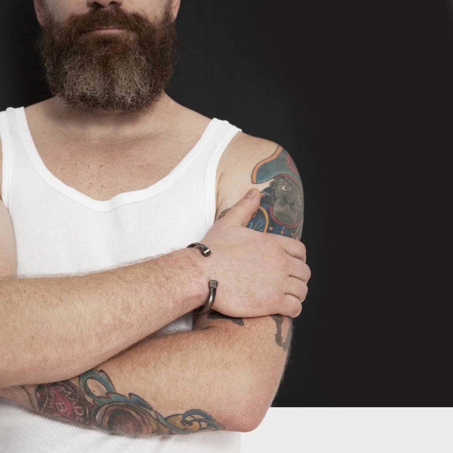 Oval X bracelet is made from solid sterling silver, oxidised and brushed.