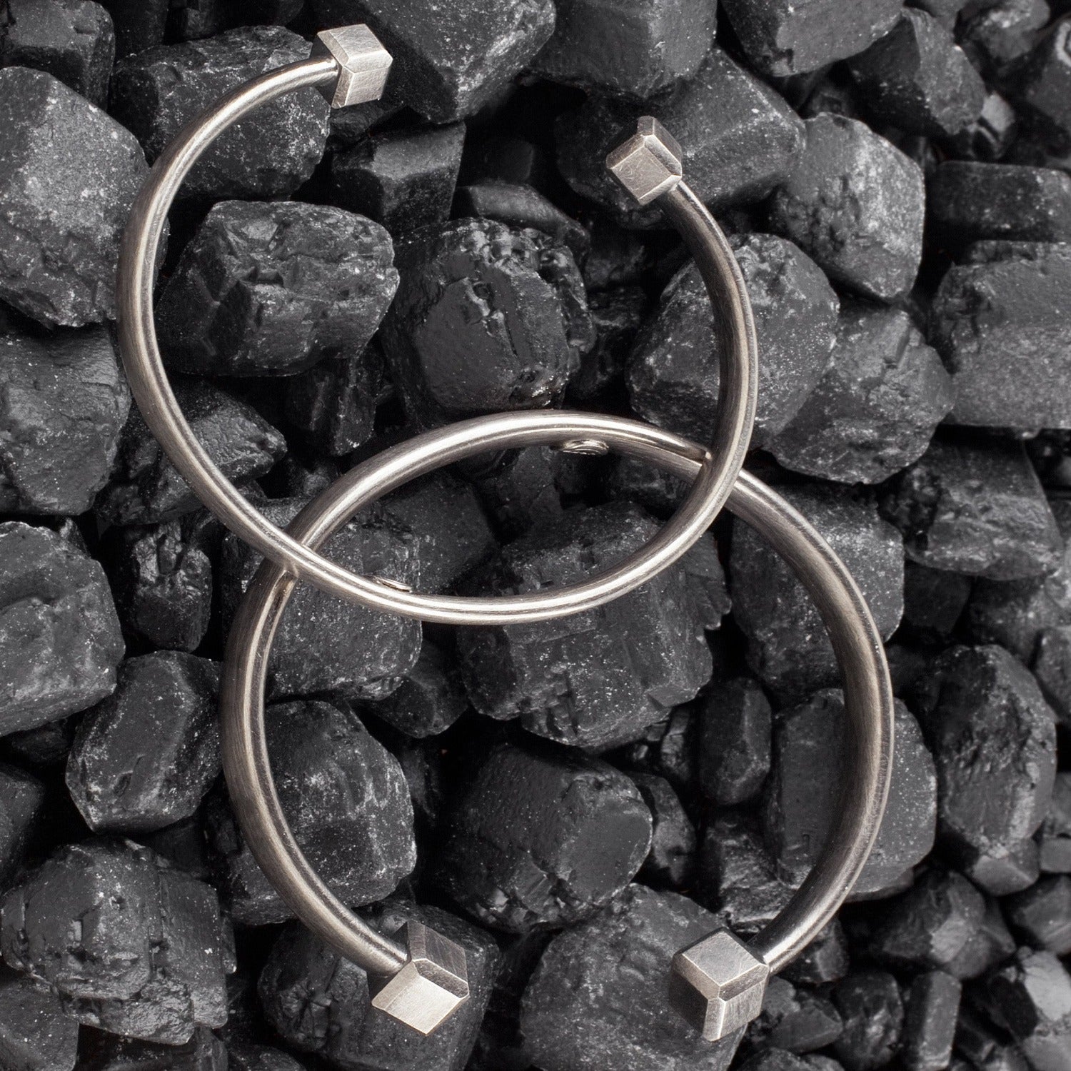 The bracelet is made from oval, solid material and wears very comfortable. It ends in two solid cubes. The cubes edges are facetted.